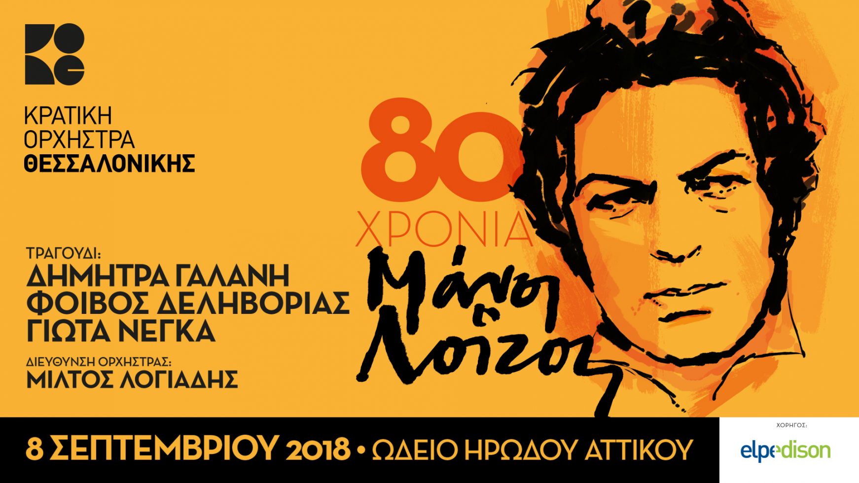 ΚΡΑΤΙΚΗ ΟΡΧΗΣΤΡΑ ΘΕΣΣΑΛΟΝΙΚΗΣ ΔΗΜΗΤΡΑ ΓΑΛΑΝΗ – ΦΟΙΒΟΣ ΔΕΛΗΒΟΡΙΑΣ – ΓΙΩΤΑ ΝΕΓΚΑ ΔΙΕΥΘΥΝΣΗ ΟΡΧΗΣΤΡΑΣ: ΜΙΛΤΟΣ ΛΟΓΙΑΔΗΣ ΩΔΕΙΟ ΗΡΩΔΟΥ ΑΤΤΙΚΟΥ 8 ΣΕΠΤΕΜΒΡΙΟΥ 2018 Στο πλαίσιο της συναυλίας θα παρουσιαστεί για πρώτη φορά η συμφωνική σουίτα Loizos...