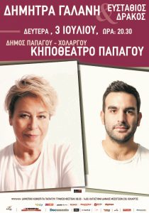 Η σπουδαία Ελληνίδα ερμηνεύτρια Δήμητρα Γαλάνη έρχεται στο Κηποθέατρο Παπάγου (23ο Φεστιβάλ Παπάγου – Χολαργού), τη Δευτέρα 3 Ιουλίου, στο πλαίσιο της καλοκαιρινής περιοδείας της, παρουσιάζοντας μια νέα παράσταση. Για 2 ώρες θα απολαύσουμε ένα πρόγραμμα γεμάτο από τα τραγούδια που την ανέδειξαν είτε τραγουδώντας τα, είτε γράφοντας την μουσική τους και που συνθέτουν το soundtrack μιας ξεχωριστής ζωής και πορείας. Με την μαγική φωνή της να χρωματίζει κάθε στίχο και να αφηγείται τις πιο μεγάλες μας επιθυμίες, τα πιο μεγάλα μας όνειρα.