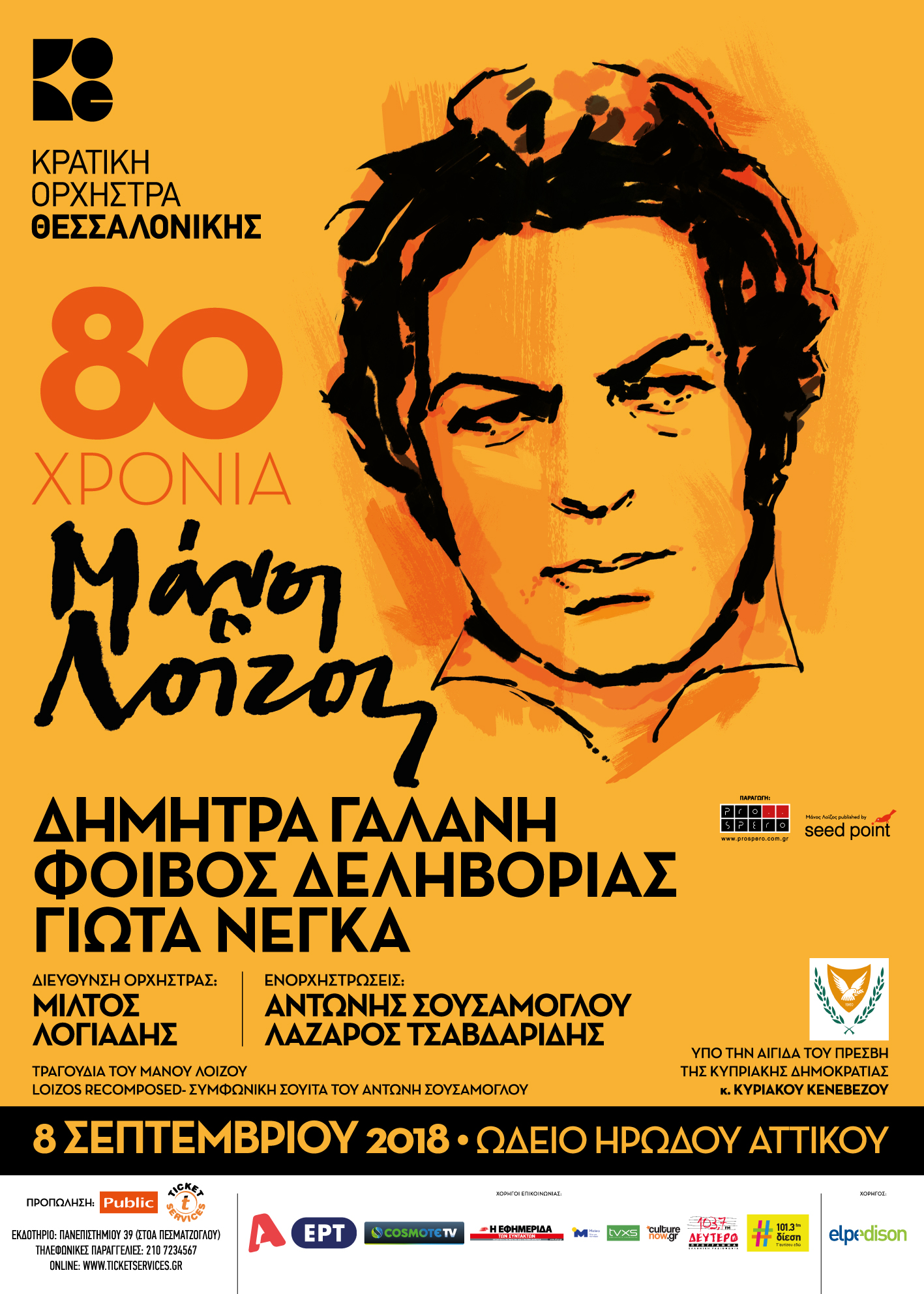 Η Κρατική Ορχήστρα Θεσσαλονίκης τιμά με μία πρωτότυπη μουσική συνάντηση τον αξέχαστο Μάνο Λοΐζο, με αφορμή τη συμπλήρωση 80 χρόνων από τη γέννησή του. Η Κ.Ο.Θ. συναντά στη σκηνή του ΗΡΩΔΕΙΟΥ την κορυφαία ερμηνεύτρια και συνεργάτη του Λοΐζου, Δήμητρα Γαλάνη, έναν από τους σημαντικότερους σύγχρονους τραγουδοποιούς, τον Φοίβο Δεληβοριά, και μία από τις πλέον ξεχωριστές λαϊκές φωνές της χώρας μας, τη Γιώτα Νέγκα, που ερμηνεύουν γνωστά τραγούδια του σπουδαίου δημιουργού σε συμφωνικές διασκευές, αναζητώντας εκλεκτικές συγγένειες με κλασικούς συνθέτες, μέσα από νέες, ανατρεπτικές, ενορχηστρώσεις. Το έργο του, άλλοτε αιχμηρό και πολιτικό, άλλοτε ερωτικό και νοσταλγικό, παραμένει ζωντανό και επίκαιρο στη συλλογική μας μνήμη, ένας από τους τελευταίους μεγάλους συνθέτες που όρισαν τον κανόνα του ελληνικού τραγουδιού. Παράλληλα η Κ.Ο.Θ. θα παρουσιάσει για πρώτη φορά τη συμφωνική σουίτα Loizos Recomposed του Αντώνη Σουσάμογλου, βασισμένη σε μουσικά θέματα του τιμώμενου συνθέτη. Διευθύνει ο, Μίλτος Λογιάδης.