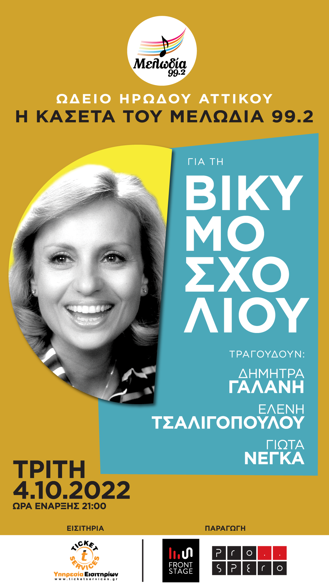 ΟΙ ΚΑΣΕΤΕΣ ΤΟΥ ΜΕΛΩΔΙΑ 99.2 στο Ωδείο Ηρώδου Αττικού![]() Τρίτη 4 Οκτωβρίου 202 Ωδείο Ηρώδου Αττικού Ώρα έναρξης: 21.00 Τραγουδούν: ΔΗΜΗΤΡΑ ΓΑΛΑΝΗ ΕΛΕΝΗ ΤΣΑΛΙΓΟΠΟΥΛΟΥ ΓΙΩΤΑ ΝΕΓΚΑ Η ΠΡΟΠΩΛΗΣΗ ΞΕΚΙΝΗΣΕ Ένα μεγάλο αφιέρωμα στην αξεπέραστη Βίκυ Μοσχολιού παρουσιάζουν η Δήμητρα Γαλάνη, η Ελένη Τσαλιγοπούλου και η Γιώτα Νέγκα, μαζί με τον Μελωδία 99.2, την Τρίτη 4 Οκτωβρίου στο Ωδείο Ηρώδου Αττικού. Οι τρεις σπουδαίες ερμηνεύτριες τιμούν τη δωρική φωνή του ελληνικού τραγουδιού, σε ένα πρόγραμμα που περιλαμβάνει τραγούδια από το σύνολο της πορείας της και παρουσιάζονται για πρώτη φορά στο Ηρώδειο. ![]() «Χάθηκε το Φεγγάρι», «Άνθρωποι μονάχοι», «Τα δειλινά», «Ασφαλώς και δεν πρέπει», «Η Μαρκίζα», «Αλήτη», «Νυν και Αεί» Η Βίκυ Μοσχολιού τραγούδησε σημαντικούς συνθέτες όπως οι Απόστολος Καλδάρας, Άκης Πάνου,Γιώργος Ζαμπέτας, Σταύρος Ξαρχάκος, Γιάννης Μαρκόπουλος, Γιάννης Σπανός, Σταμάτης Κραουνάκης, Δήμος Μούτσης, Λ.Κηλαηδόνης κ.ά αλλά και εμβληματικούς στιχουργούς όπως οι: Ευτυχία Παπαγιαννοπούλου, Νίκος Γκάτσος, Λευτέρης Παπαδόπουλος,Δημήτρης Χριστοδούλου, Πυθαγόρας, Χαράλαμπος Βασιλειάδης, Βαγγέλης Γκούφας, Κώστας Τριπολίτης, Λίνα Νικολακοπούλου κ.α. Δεν είναι άλλωστε τυχαίο ότι οι ίδιοι οι συνθέτες και οι στιχουργοί ζητούσαν τη «φωνή της Μοσχολιού» για τα τραγούδια τους. Ερμηνεύτρια που αποτελούσε και εξακολουθεί να αποτελεί πρότυπο για πολλές τραγουδίστριες. Στιβαρή και αγέρωχη, η φωνή της Μοσχολιού συνδύαζε την αρτιότητα ενός μουσικού οργάνου με την βυζαντινή δωρικότητα με μεγάλη έκταση και μια «μελαγχολική βραχνάδα» που πάντα συγκινεί. Η πρώτη της εμφάνιση ήταν στην ταινία «Λόλα», στη χαρακτηριστική σκηνή που όλοι θυμόμαστε, με τη Μοσχολιού στο παράθυρο να τραγουδά, άγνωστη ακόμη, το «Χάθηκε το Φεγγάρι» σε στίχους Βαγγέλη Γκούφα και μουσική Σταύρου Ξαρχάκου. Τα «Δειλινά», ένα από τα πιο όμορφα τραγούδια της, τα «κέρδισε» επειδή η Πόλυ Πάνου, για την οποία είχε αρχικά γραφτεί, είχε πάει για μπάνιο προκαλώντας τον Ζαμπέτα να εμπιστευτεί τη νέα τότε Μοσχολιού. Ήταν το ξεκίνημα μιας λαμπρής διαδρομής. Πάντα πρωτοποριακή στις επιλογές της, η Βίκυ Μοσχολιού εμπιστεύθηκε και τραγούδησε το νεαρό τότε δίδυμο «Κραουνάκη – Νικολακοπούλου», ακολουθώντας πιστά τις επιλογές του παραγωγού της Γιώργου Μακράκη στο λαϊκό, έντεχνο και έντεχνο λαϊκό τραγούδι, ενώ ήταν και από τις πρώτες τραγουδίστριες που εγκατέλειψαν τις μεγάλες σκηνές για τις μπουάτ της Πλάκας, προτείνοντας έναν πιο ατμοσφαιρικό τρόπο διασκέδασης. Η Βίκυ Μοσχολιού αγαπήθηκε όσο λίγες τραγουδίστριες. Στο πρόσωπό της επαληθεύθηκε το «ελληνικό όνειρο». Από την απόλυτη φτώχεια, στην απόλυτη δόξα, την καλλιτεχνική καταξίωση και την εμπορική αποθέωση. Όμως, πίσω από τη λάμψη που αποκτούσε η προσωπική της ζωή στα πρωτοσέλιδα των εφημερίδων, η ίδια έκρυβε μια μεγάλη, συγκινητική σεμνότητα. ———————————————————————– Οι τρεις κορυφαίες ερμηνεύτριες, οι οποίες στις 4 Οκτωβρίου στο Ηρώδειο της αποτίουν φόρο τιμής ερμηνεύοντας τα τραγούδια της, λένε για εκείνη: ![]() «Πέρα από το βαθύ σεβασμό μου στη μεγάλη τέχνη της τραγουδίστριας που είχα την τύχη να γνωρίσω και να συνεργαστώ μαζί της, νιώθω χαρά και συγκίνηση που συμμετέχω σε ένα αφιέρωμα για τη Βίκυ Μοσχολιού, για μία γυναίκα που είναι από μόνη της μια ολόκληρη “σχολή” και που έχει τραγουδήσει ένα από τα πιο αξιόλογα ρεπερτόρια που