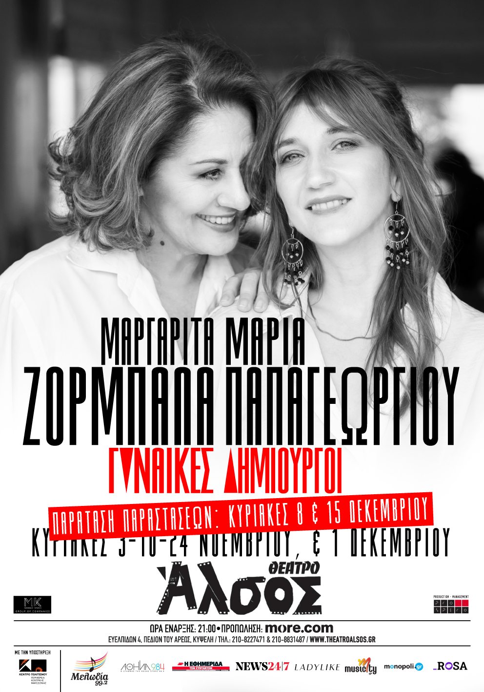 Η Μαργαρίτα Ζορμπαλά και η Μαρία Παπαγεωργίου σας περιμένουν τις Κυριακές στο θέατρο Άλσος, για τέσσερις ξεχωριστές παραστάσεις!