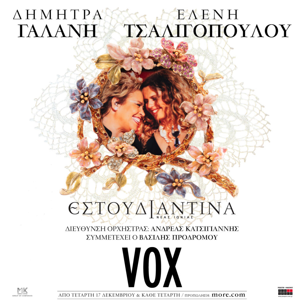 | ΔΗΜΗΤΡΑ ΓΑΛΑΝΗ – ΕΛΕΝΗ ΤΣΑΛΙΓΟΠΟΥΛΟΥ ΕΣΤΟΥΔΙΑΝΤΙΝΑ ΝΕΑΣ ΙΩΝΙΑΣ ΒΟΛΟΥ Διεύθυνση ορχήστρας: Aνδρέας Κατσιγιάννης Συμμετέχει ο Βασίλης Προδρόμου Από Τετάρτη 17 Δεκεμβρίου και κάθε Τετάρτη στο VOX Δύο από τις σημαντικότερες ερμηνεύτριές μας και μία θαυμάσια ορχήστρα σε μία μουσική παράσταση γεμάτη από τη ζεστασιά και την οικειότητα των τραγουδιών και των φωνών που αγαπάμε. Μία συνάντηση που υπόσχεται έναν ξεχωριστό μουσικό χειμώνα! Από την Τετάρτη 17 Δεκεμβρίου και κάθε Τετάρτη στη σκηνή του VOX, η Δήμητρα Γαλάνη συναντά ξανά την Ελένη Τσαλιγοπούλου, τον Βασίλη Προδρόμου, από τη νεότερη γενιά ερμηνευτών, και την ιστορική Ορχήστρα Εστουδιαντίνα Νέας Ιωνίας Βόλου. Οι δύο ερμηνεύτριες μας μιλούν για τη νέα τους συνεργασία: «Μας δένει μια μακρά πορεία μέσα στο τραγούδι. Από το ’93, με αφετηρία το πάντα αγαπημένο και αλησμόνητο “Χάραμα”, έχουμε σταθεί πολλές φορές μαζί στη σκηνή κι εκεί γεννήθηκε μια βαθιά αλληλεπίδραση — ένα βλέμμα, μια νότα, μια κοινή αίσθηση για το τι σημαίνει να ζεις τη μουσική. Αυτή τη φορά, σε αυτό το νέο μας «δέσιμο», έρχεται να προστεθεί και ο Βασίλης Προδρόμου — ένας υπέροχος και αγαπητός σε όλους μας τραγουδιστής – τραγουδοποιός και μουσικός, με σεβασμό, ψυχή και αληθινή αγάπη για το τραγούδι. Ένας καλλιτέχνης της γενιάς του που έχει πολλά να δώσει και να μοιραστεί μέσα από τη φωνή και την παρουσία του. Μαζί μας και η ορχήστρα Εστουδιαντίνα Νέας Ιωνίας – με τους εξαιρετικούς σολίστες της, μια ορχήστρα που αγαπάμε πολύ και που φέτος κλείνει 30 χρόνια δημιουργικής παρουσίας υπό την διεύθυνση του Ανδρέα Κατσιγιάννη, έχοντας αφήσει το δικό της σημαντικό ίχνος στην ελληνική μουσική. Δίπλα μας και δύο υπέροχοι μουσικοί, ο Σπύρος Χατζηκωνσταντίνου και ο Σεραφείμ Γιαννακόπουλος, που βάζουν τη δική τους σφραγίδα με τρόπο μοναδικό. Φέτος, όλοι εμείς, συναντιόμαστε για πρώτη φορά επί σκηνής. Μας ενώνουν κοινές αγάπες για το τραγούδι που κουβαλά ιστορίες, για τις ρίζες που μας συγκινούν, για τη μουσική που κρατά ζωντανό ό,τι αγαπήσαμε. Η Δήμητρα έρχεται από τον κόσμο του Τσιτσάνη και του λαϊκού τραγουδιού, με εκείνη την ευγένεια και τη γνώση που κουβαλά όποιος έχει μελετήσει σε βάθος αυτή τη μουσική. Η Ελένη, από τον κόσμο της παράδοσης και του σμυρναίικου τραγουδιού, με ρίζες που ακουμπούν στη Μικρά Ασία, εκεί όπου πάλλεται η καρδιά του τραγουδιού από τον καημό και τη γλύκα. Μαζί, γινόμαστε μια μεγάλη μουσική παρέα, που «πειράζει» τρυφερά την παράδοση, αγκαλιάζει όλο το φάσμα του ελληνικού τραγουδιού ως το σήμερα και αφήνει χώρο για το απροσδόκητο και την έκπληξη. Ετοιμαστείτε για έναν χειμώνα γεμάτο υπέροχα τραγούδια, παρέα με τον Διόνυσο και τη χαρμολύπη, που τόσο έχουμε ανάγκη. Γιατί τα τραγούδια μάς κάνουν καλύτερους ανθρώπους.» Δήμητρα Γαλάνη – Ελένη Τσαλιγοπούλου |