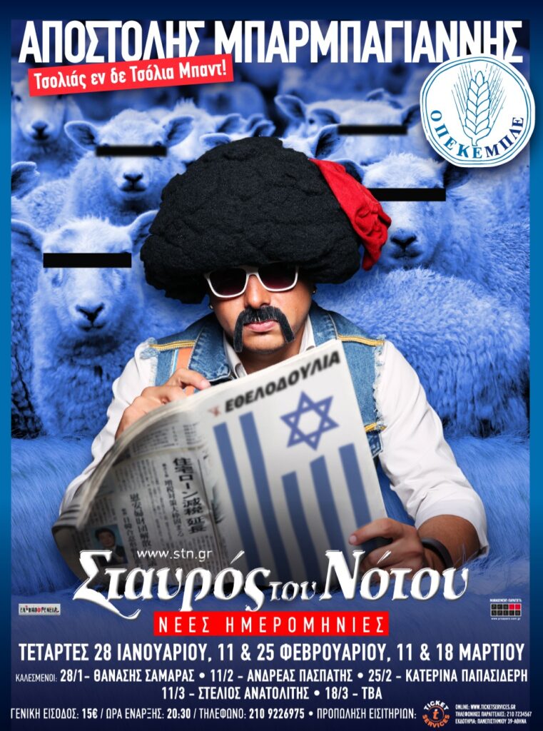 Ο Αποστόλης Μπαρμπαγιάννης ύστερα από τις sold out εμφανίσεις του, επιστρέφει στην Κεντρική σκηνή του Σταυρού του Νότου με νέους καλεσμένους ! Ο γνωστός σατιρικός επιστρέφει στο γνωστό λημέρι με τη γνωστή διάθεση, αλλά με άγνωστο κείμενο για ένα υπερθέαμα γέλιου, προβληματισμού και συγκίνησης.